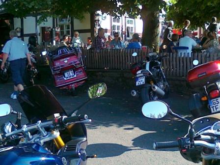 Der herrliche Altweibersommer lockte (leider nur) 6 Biker auf 4 Motorrädern für 8 Stunden auf eine schöne Rundtour. Der erste Stopp führte zum Bikertreff "Sachsenklause" im Eggegebirge mit schönem Blick über Bad Driburg.